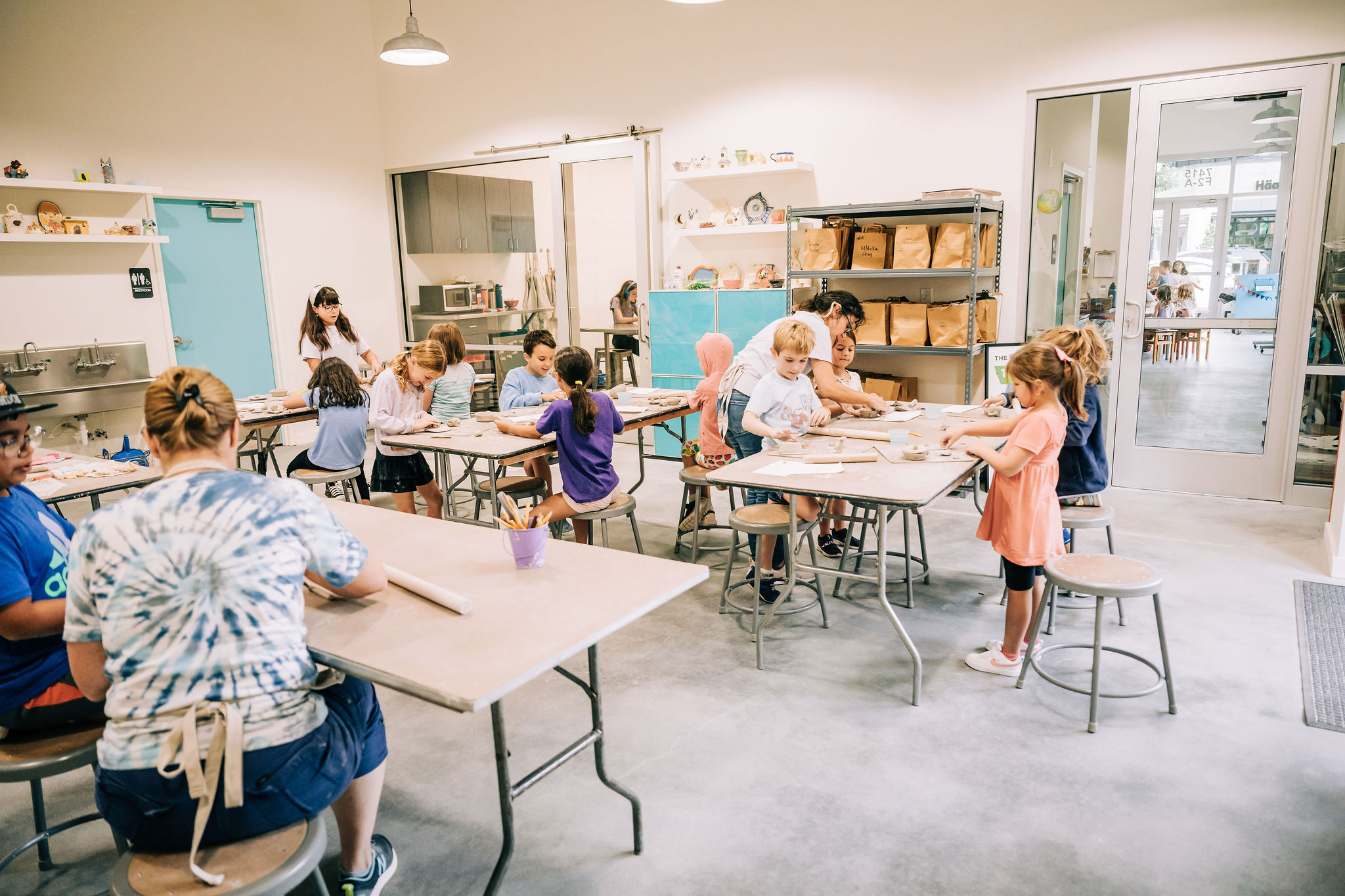 During our Saturday DROP IN Pottery Class, students ages 5-14 will learn the basics of hand building. Through demonstration by our experienced instructors and hands on learning, students practice foundational construction techniques (coil, slab and pinch pot) to sculpt an amazing hand built project. Note that we do not teach the pottery wheel in this class – see our Friday afternoon 4-5pm drop in Pottery Wheel Classes.