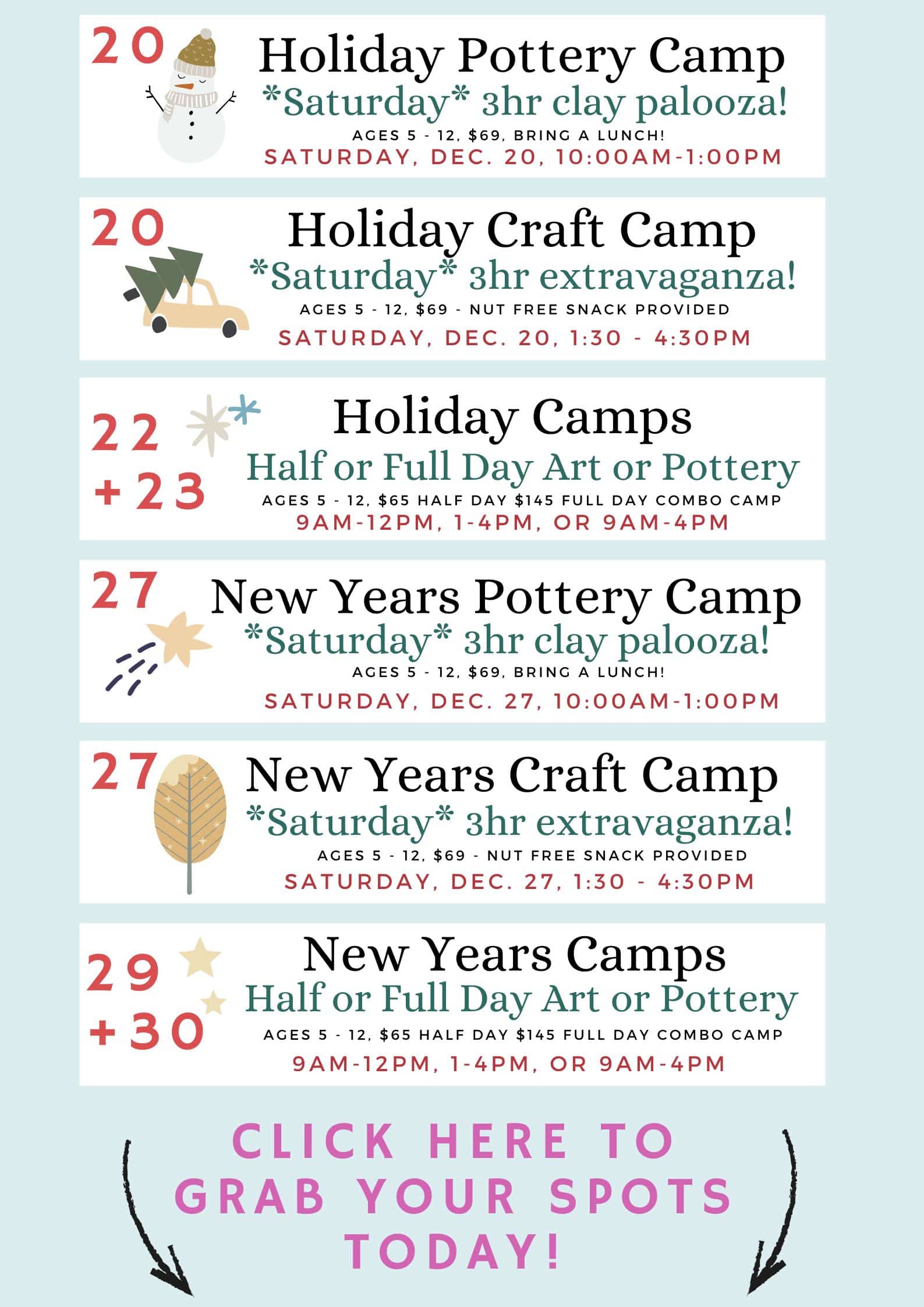 Special Holiday Art and Ceramic Workshops